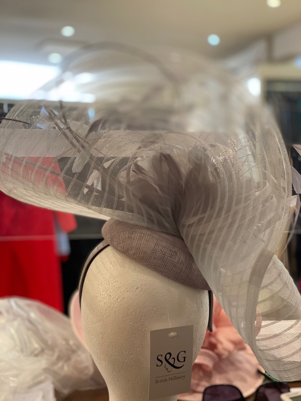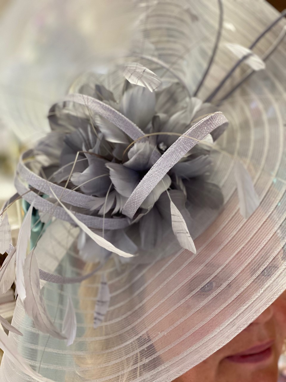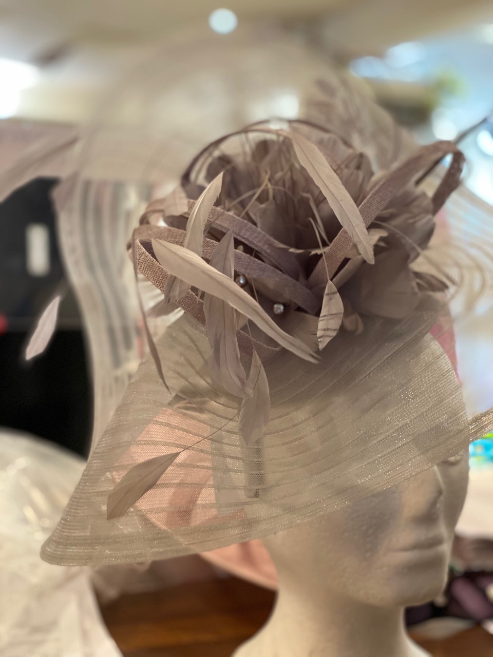 Stand out in this Large swirl crin piece, with feathers, fitted on a sinamay base and an alice band