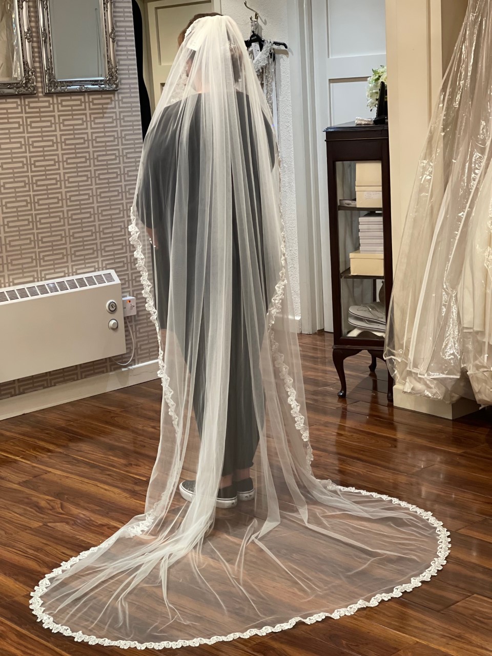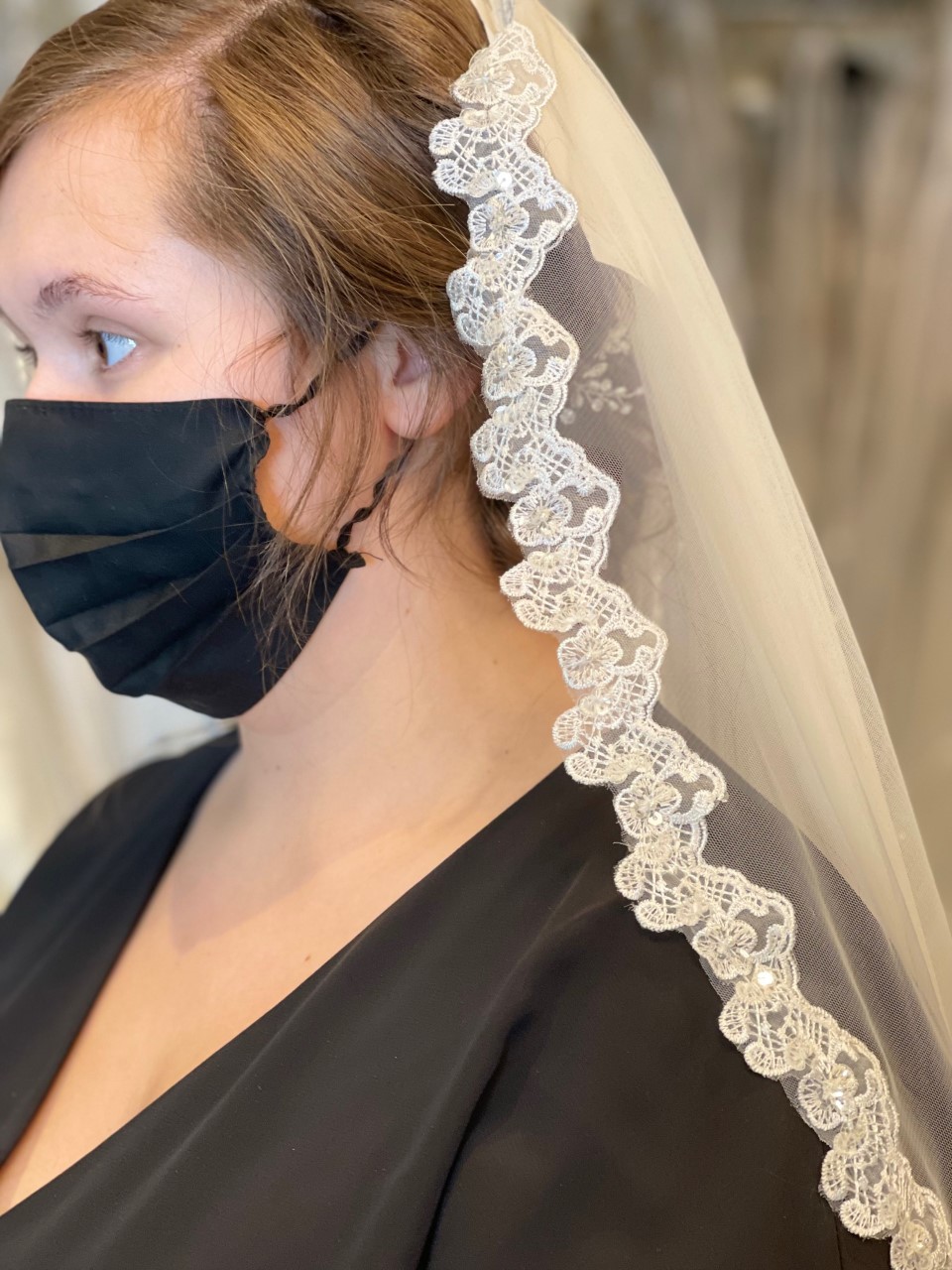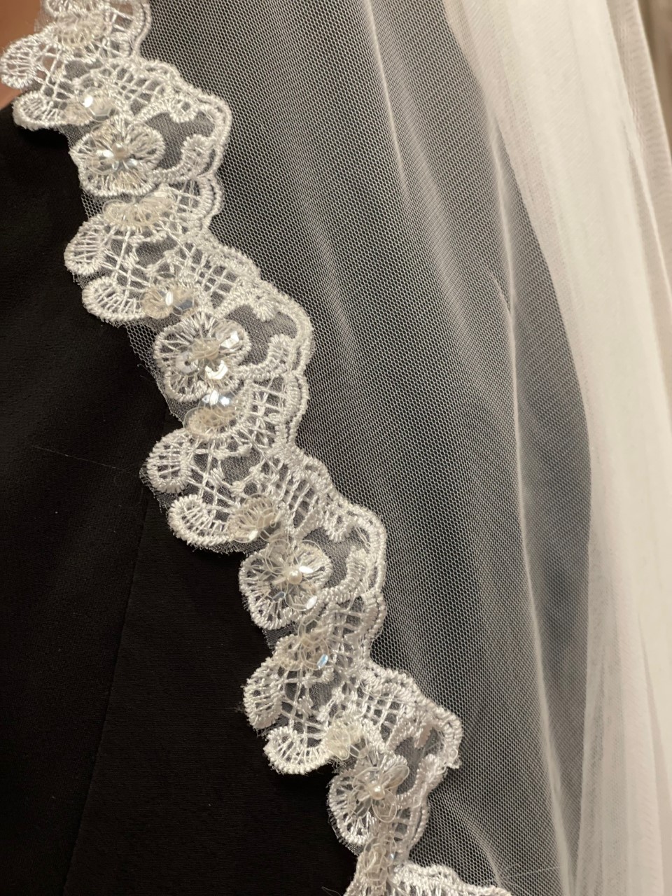 Ivory veil trimmed with lace and sequins