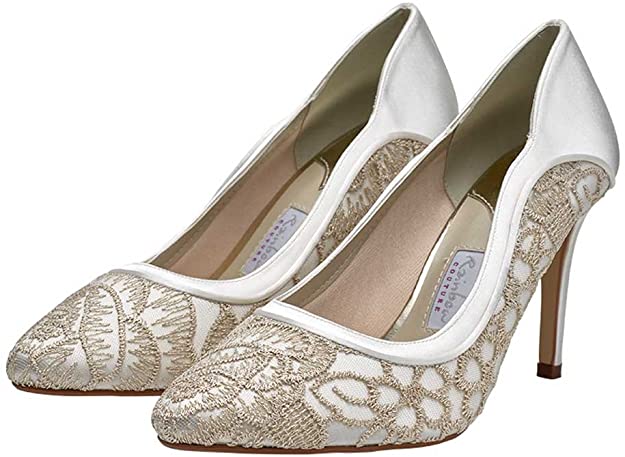 Crafted from beautiful satin with understated floral embroidery, these Lorna shoes from Rainbow Club boast an elegant court shape with vintage inspired curves for a unique accent.